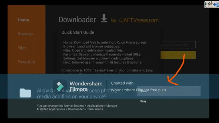 6) When you start the app for the first time, you must grant the downloader access to your file system. Select the option “Allow”.